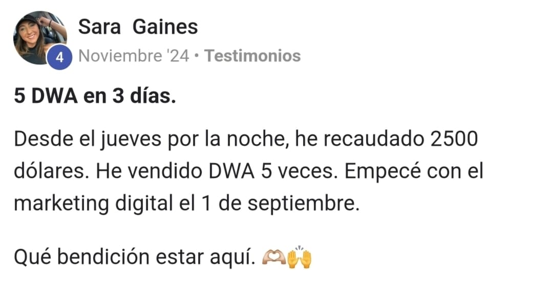 Por fin está aquí: DWA 2.0, el curso completo de marketing digital y automatización con TODO lo que necesitas para aprender a crear multiples fuentes de ingresos en línea sin sacrificar tiempo con tu familia.