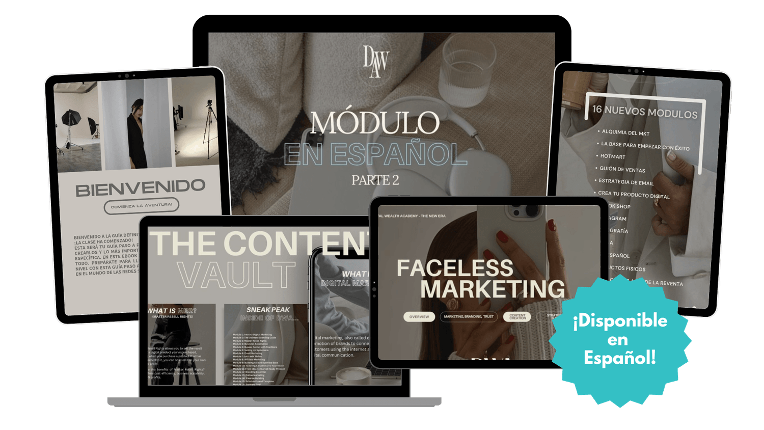 Este es un curso completo diseñado para principiantes que te enseña cómo iniciar un negocio de marketing digital exitoso. El curso incluye módulos paso a paso que te guiarán en el lanzamiento de tu negocio de productos digitales y cómo utilizar el marketing digital para realizar ventas. Aprenderás cómo promocionarte, tener un buen desempeño en SEO, comercializar en varios canales de redes sociales, cómo crear embudos de ventas de alta conversión, campañas de correo electrónico y todo lo que necesitas para crear un negocio rentable de ingresos pasivos. Este producto es único porque una vez que lo compras, lo puedes revender y quedarte con el 85% de ganancia de cada venta realizada a través del programa de afiliados con un enlace único disponible para ti.